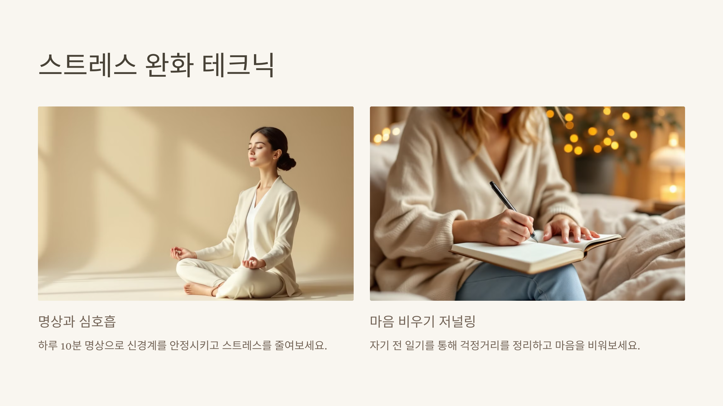 - ❤️ 스트레스를 완화하는 저널링이나 허브티를 활용해 보세요!