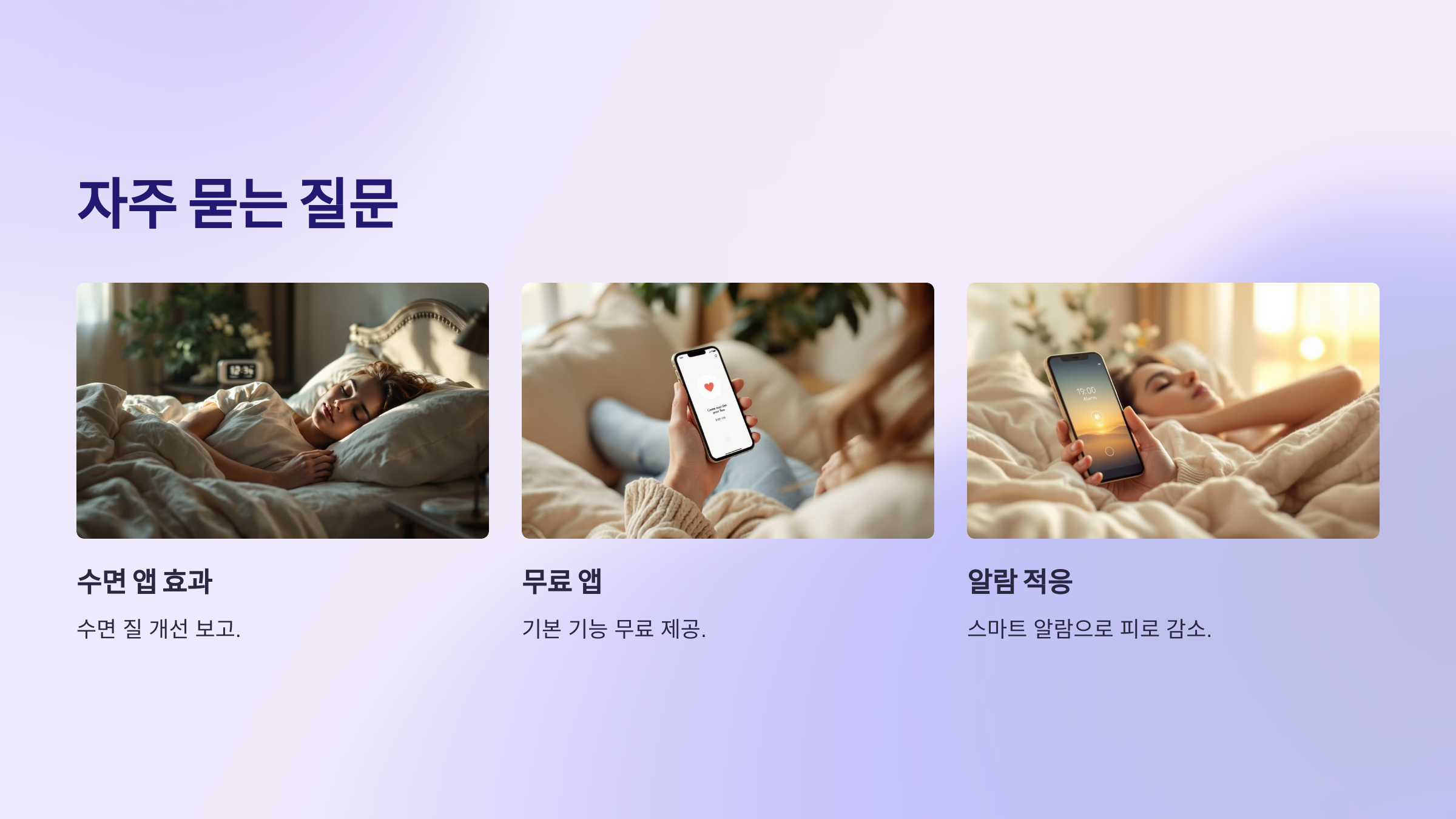A3. 처음에는 적응이 필요할 수 있지만, 스마트 알람이 깊은 잠이 아닌 얕은 수면 단계에서 깨워 주기 때문에 시간이 지나면 기상 후 피로가 줄어드는 효과를 느끼실 수 있습니다.