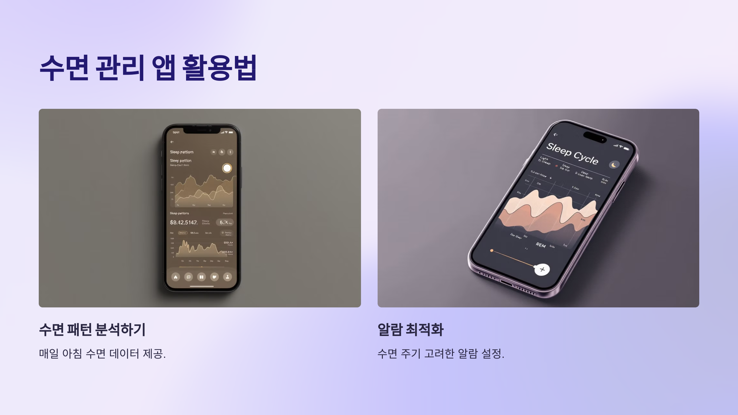 수면 주기를 고려한 알람 설정은 기상 후의 피로를 줄여줍니다.