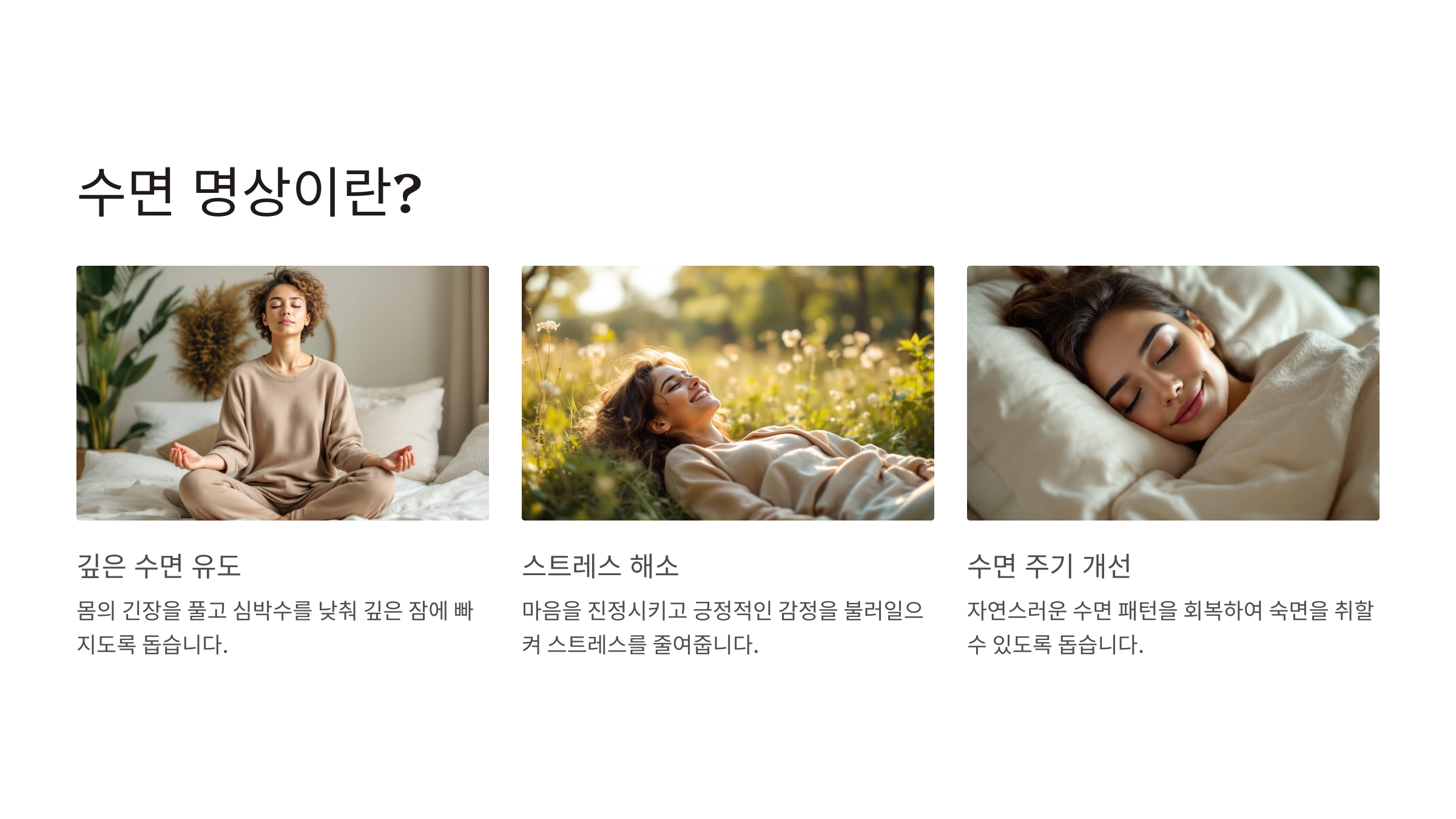 | 깊은 수면 유도 | 신체 긴장을 완화하고 심박수를 낮춥니다. |