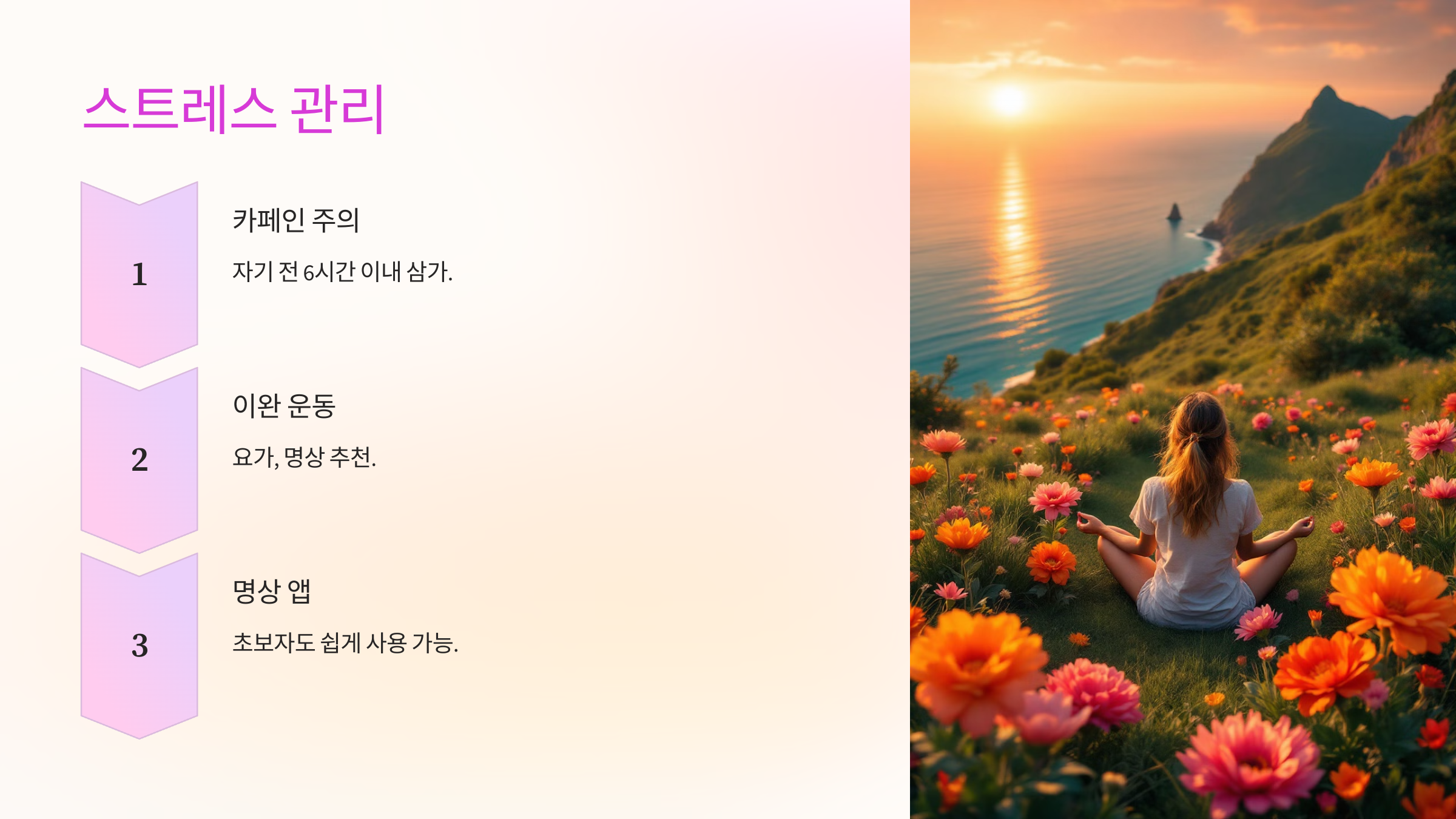- 📝 실천 가능한 행동 순서: 수면 루틴 설정 → 환경 최적화 → 스트레스 관리