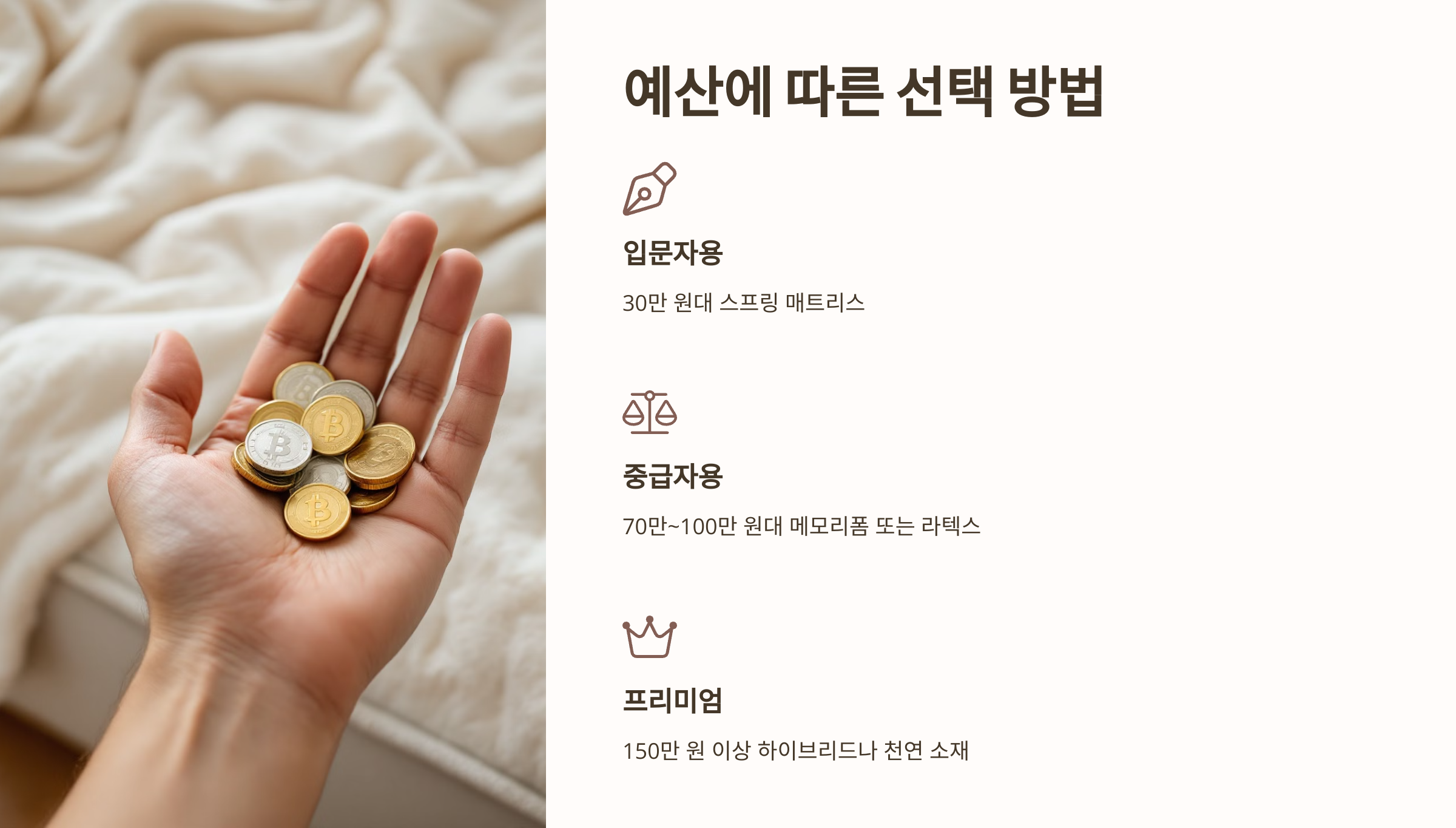 - 중급자용: 70만~100만 원대 메모리폼 또는 라텍스