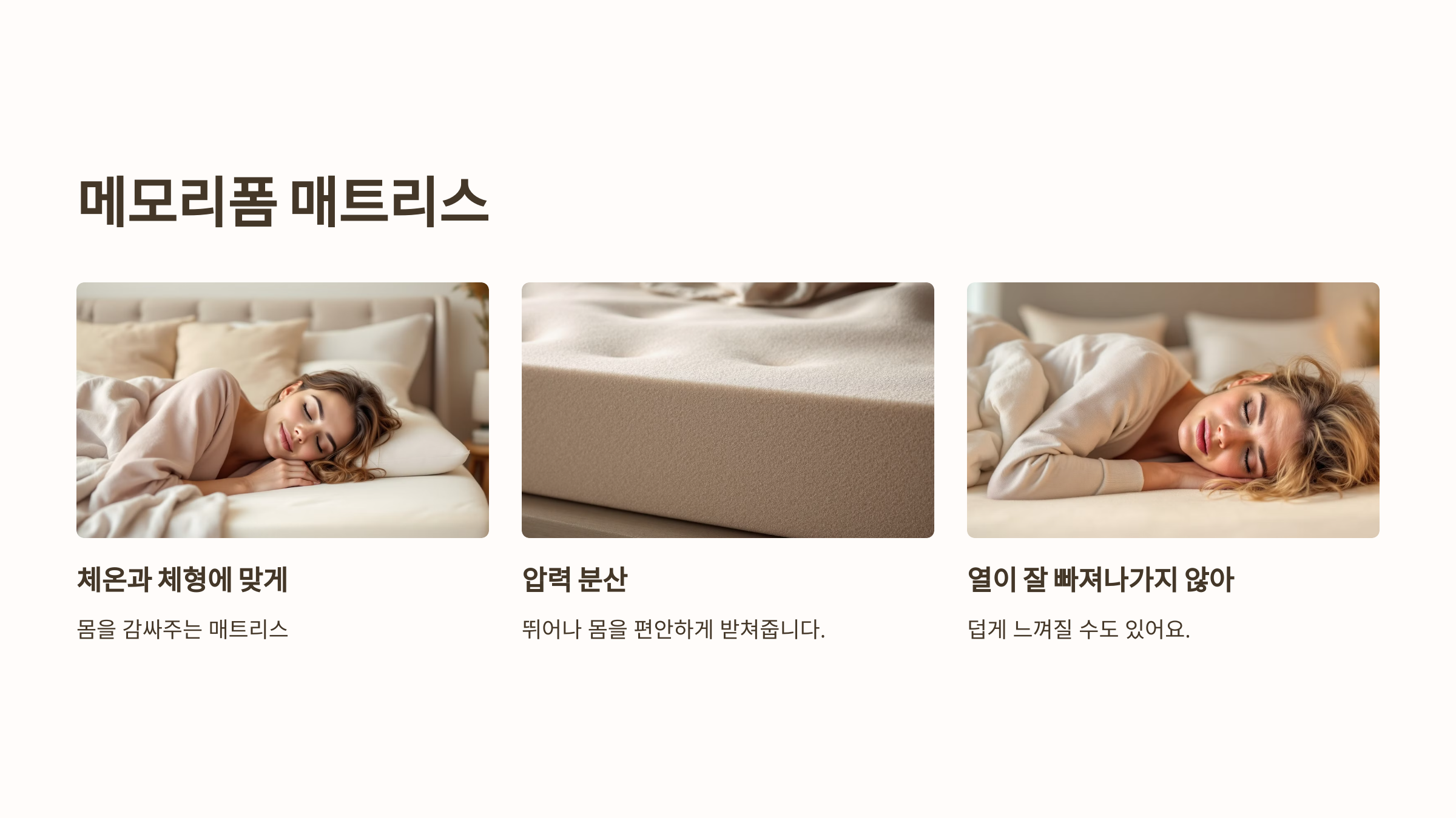 - 특징: 체온과 체형에 맞게 몸을 감싸주는 매트리스