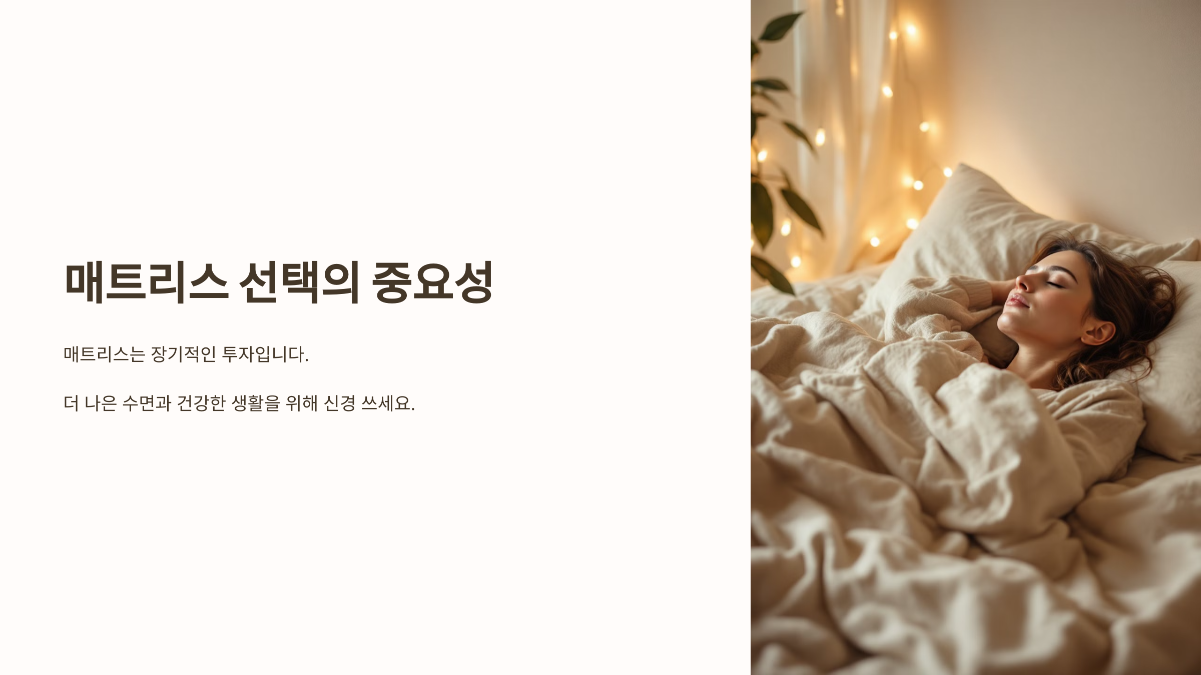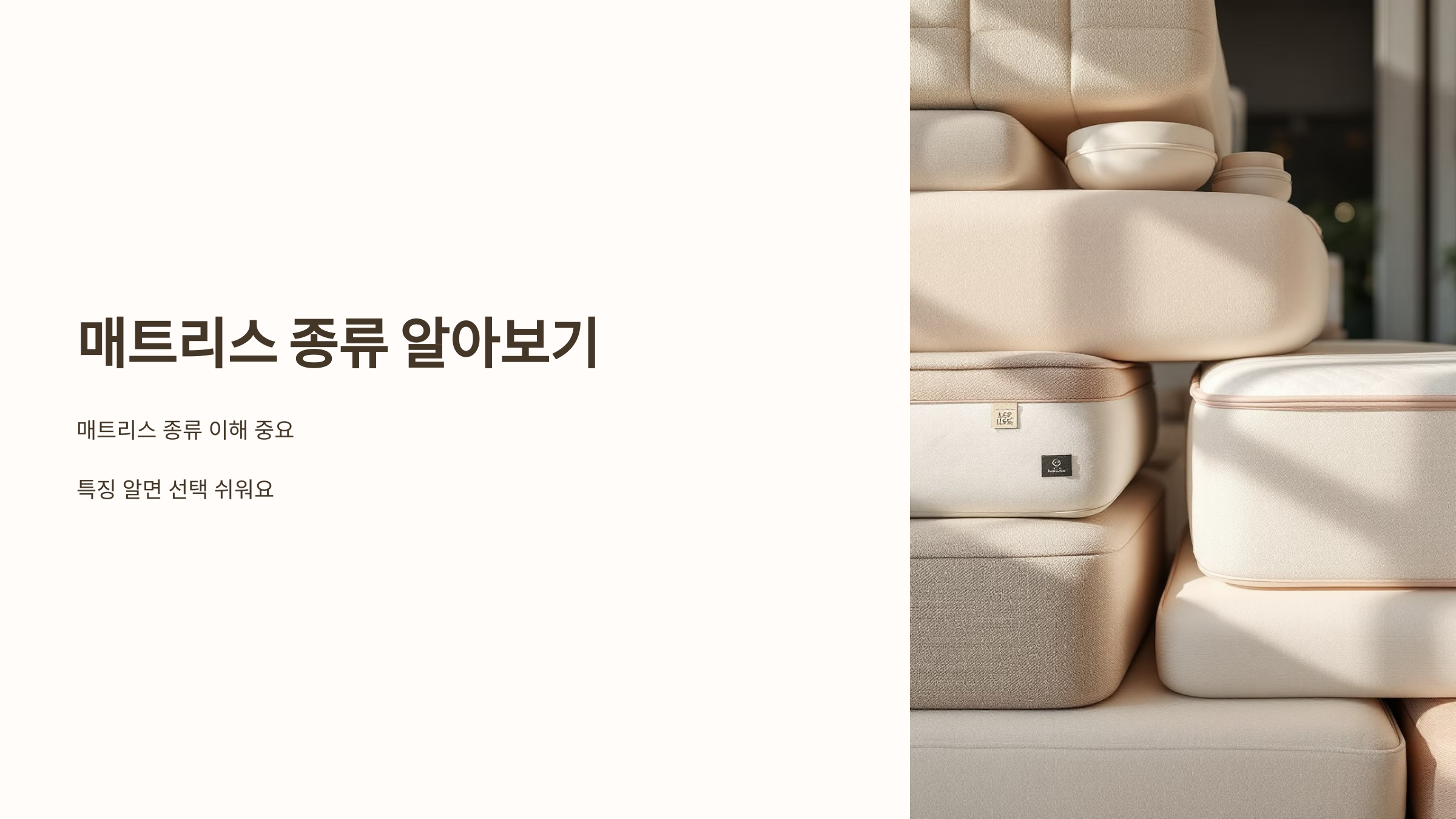 좋은 잠, 우리 모두가 꿈꾸는 거죠? 🛌 근데 자고 일어났는데도 피곤함이 가시지 않는다면, 혹시 매트리스가 문제일 수도 있습니다. 사실, 좋은 매트리스는 건강한 수면의 필수 조건이에요. 오늘은 매트리스 선택의 모든 것을 쉽고 친근하게 알려드릴게요. 함께 하나씩 살펴보면서 나에게 딱 맞는 매트리스를 찾아봐요!