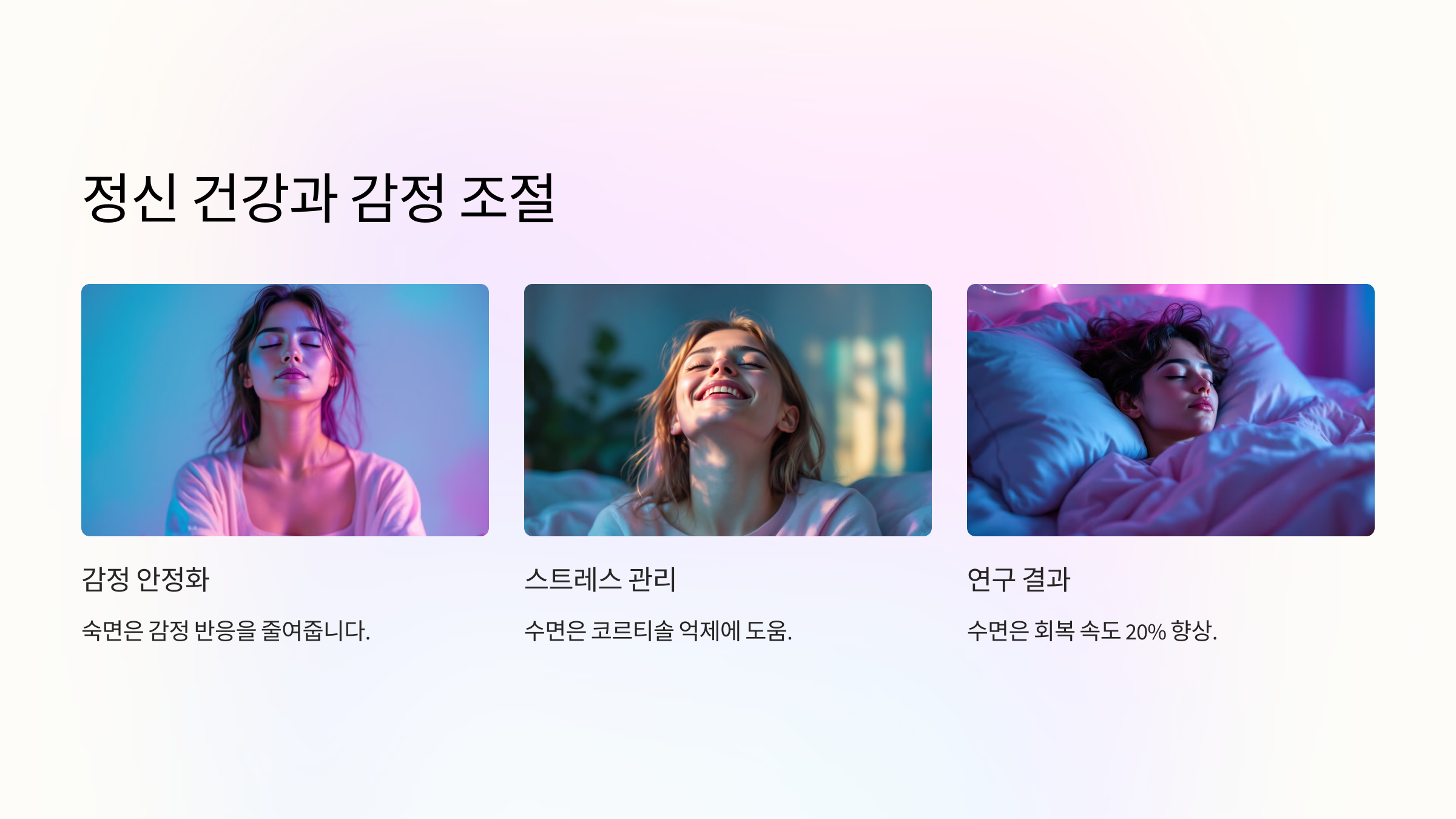 - 📌 감정 안정화: 숙면은 뇌의 감정 처리 메커니즘을 조절하여 불필요한 감정적 반응을 줄여줍니다.